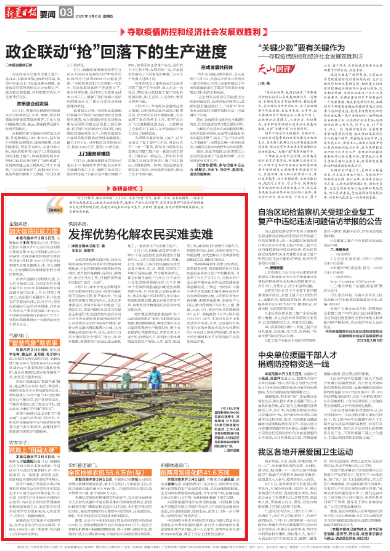喀什地区供销社积极发挥“农产品流通服务体系”优势,及时组织调运物资,畅通购销渠道,确保全地区生活必需品和春耕生产物资供应。喀什地区供销社党委副书记、理事会主任王龙介绍,疫情发生后,供销社立即协调购进生活生产物资、入库、出库、配送等工作,确保喀什市场物价平稳有序、物资供给充足。同时,积极对接农产品种植基地,加大生鲜农产品调拨和物流配送力度,确保市场供应。
