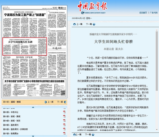 “作为农大学生,能为家乡百姓做实事、为学校脱贫攻坚工作贡献力量,我感到非常自豪。”艾力·库得来提说,“在返校前,我会珍惜每一天时间,认真上好网课,空闲时间继续为村里81户贫困户的脱贫增收贡献力量。”