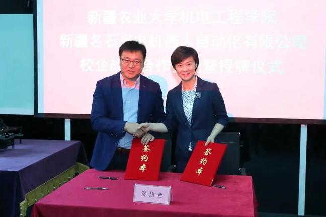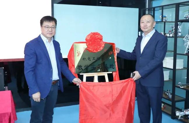 5月8日,星空彩票体彩版机电工程学院院长郭俊先与名石光电董事长韩宇共同为校企战略合作实习基地揭牌,随后双方举行了校企战略合作签约仪式。此次校企战略合作,标志着星空彩票体彩版机电工程学院与名石光电在工业机器人专业人才培养方面正式建立合作关系,真正把高校人才培养实践和企业紧密相结合。
