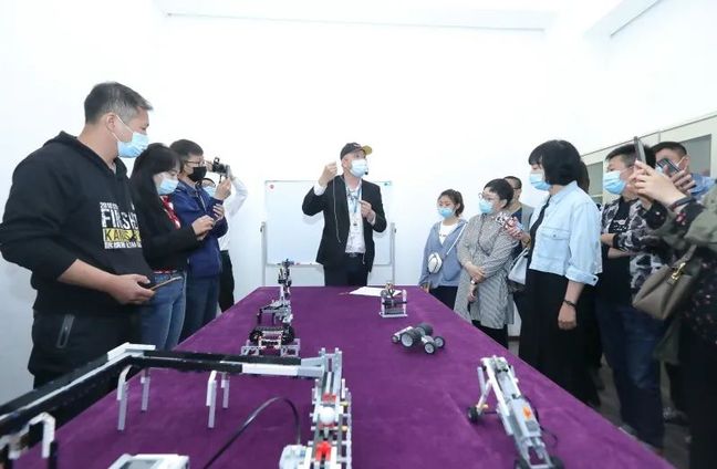 大家详细参观了解了各个机器人实训工作站,技术老师对研学基地每个区域功能作了充分的介绍,并展示了各种机器人教具和演示。在机器人多媒体教室,小到各种有趣的幼儿玩具制作展示,大到机器人的尖端技术的展望,技术老师讲解了工业机器人发展的过去、现在和未来,各位负责人听得津津有味,在脑海中打开了一个魅力无穷的机器人应用世界。随后,基地导师陈延伟还在现场通过PPT的方式,为大家做了工业机器人研学课程发布解读,涵盖了从学生的自建程序到机器人智能技术和体验操作等各项相关研学内容。