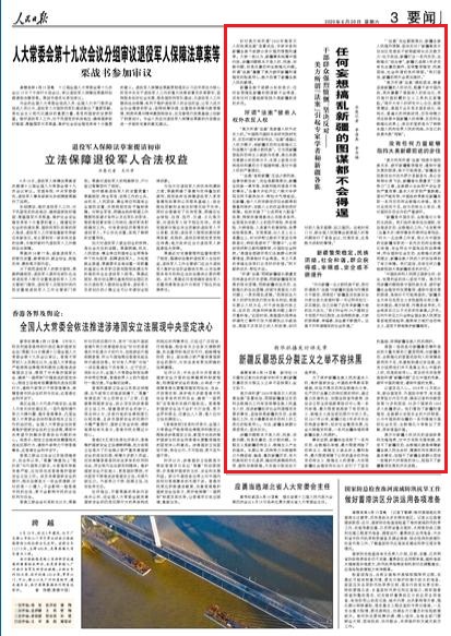 “‘法案’完全颠倒黑白,新疆各族人民强烈愤慨、坚决反对!”新疆维吾尔自治区党委老干部局副局长买买提艾力·吐尔洪说,新疆打出一系列反恐、去极端化“组合拳”,新疆已连续3年多没有发生暴恐案件,呈现繁荣稳定、民族团结、社会和谐的良好局面。“我们坚信,新疆的明天会更加美好。”