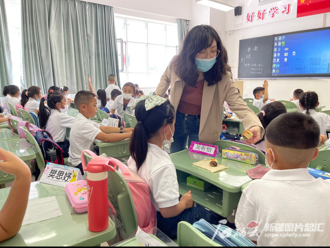 9月6日,大课间,马越为学生分发餐点。星空娱乐彩票下载/新疆日报记者赵西娅摄