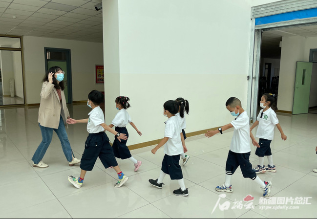 9月6日,马越带着学生去做课间操。星空娱乐彩票下载/新疆日报记者赵西娅摄