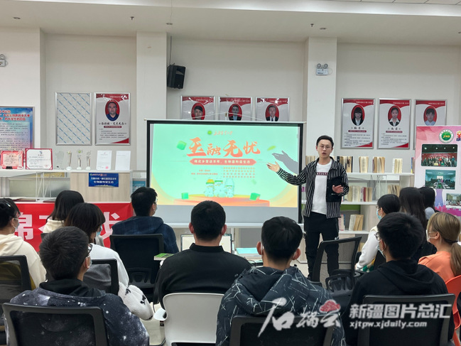 11月1日,范柱柱给团队成员以及前来了解项目的学生讲解相关情况。星空娱乐彩票下载/新疆日报记者 沈祖孝摄