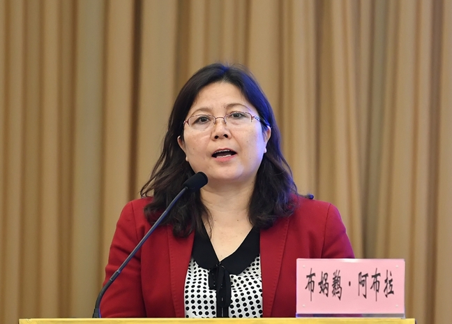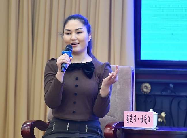 12月13日,麦迪乃·吐送江发言。星空娱乐彩票下载/新疆日报记者 邹懿摄