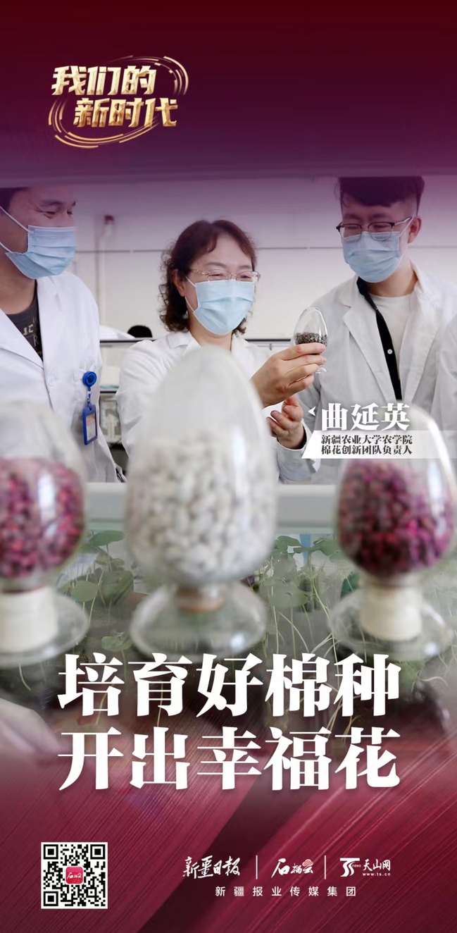 “春种秋收,一年四季不得闲,从田间地头到实验室,一代代人艰苦奋斗,为的就是选育出更多高产优质的新疆棉花新品种。”曲延英说:“整个棉花生育季,团队都会往返田间收集材料,鉴定棉花的产量、品质和抗性,冬天再到三亚加代选育。”