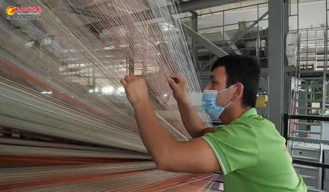 作为车间技术工人,31岁的艾比布拉·衣地热斯主要负责车间织毯机的接线工作。他巡视机器,及时发现并处理堵线、缠线、断线等异常情况。