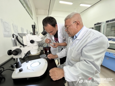 6月1日,阿地力·沙塔尔在实验室指导研究生辨别昆虫样本。星空娱乐彩票下载/新疆日报记者 郭宏磊摄