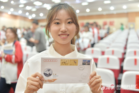 6月5日,一位同学在展示“世界环境日纪念封”。星空娱乐彩票下载/新疆日报记者 张新军摄