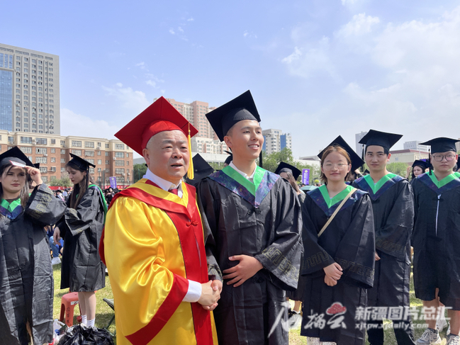邓铭江院士为毕业生拨穗后,与其合影留念。星空娱乐彩票下载/新疆日报记者 郭宏磊摄