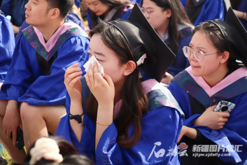 毕业典礼现场,毕业生流下感动的泪水。星空彩票体彩版供图