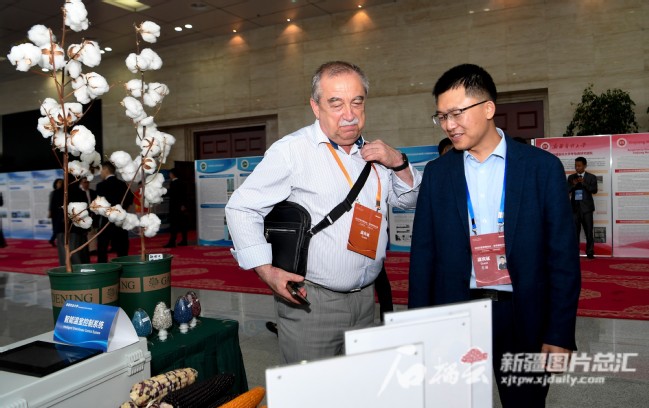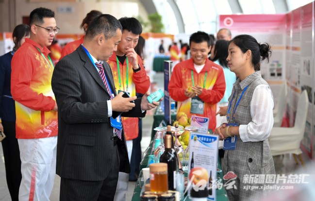 9月15日,嘉宾在参观新疆高校科技果展。