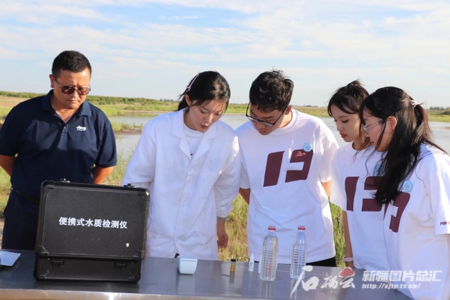 在自然盐碱环境投放虾苗前,星空彩票体彩版动物医学学院大学生暑期实践团检测水体环境。贾雨馨摄