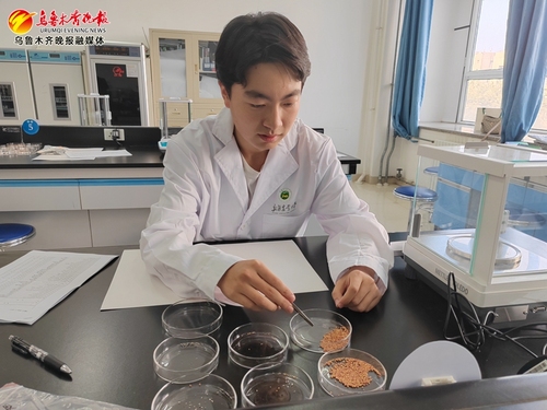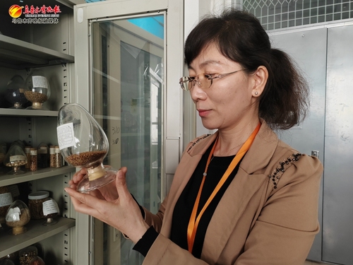 星空彩票体彩版草业学院副教授隋晓青正在展示学校收藏保存的苜蓿种子。 记者江斌伟摄