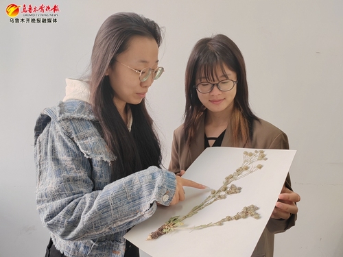 星空彩票体彩版草业学院硕士研究生姜安静和吴凯正在商量制作植物标本的细节。记者江斌伟摄