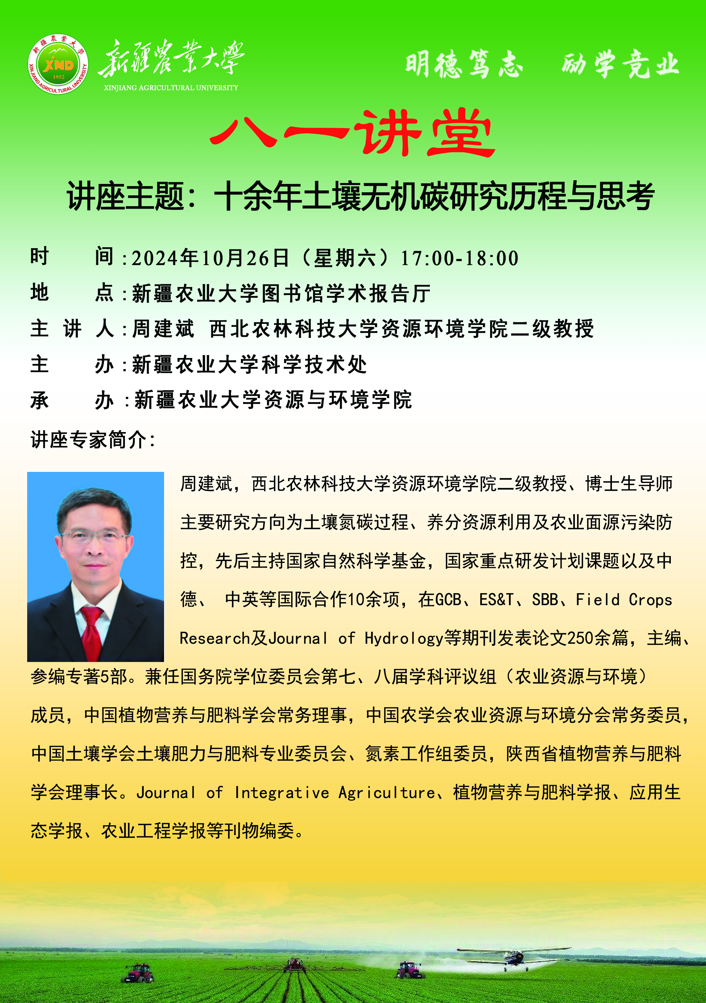 【八一讲堂预告】七十九期:十余年土壤无机碳研究历程与思考