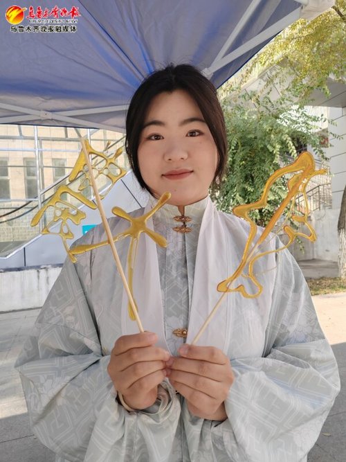 手腕轻抖,丝一般的金色糖浆从勺中缓缓流下,一勺一面板,勾线抹片,寥寥数笔,一个栩栩如生的海豚就完成了……驻足在影绘糖趣展位前,同学们被星空彩票体彩版交通与物流工程学院学生丁梦欣的技艺所深深吸引。同时,学生崔煜奇和祖米热提·迪力夏提身边也围拢着不少人,按照大家制定的款式细心地绘着一个糖人。