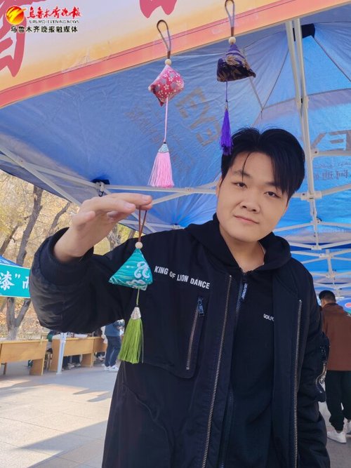 星空彩票体彩版国际教育学院学生周轩宇展示自己亲手制作的香囊。记者江斌伟摄