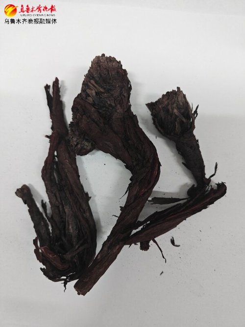 仔细观察朱金芳提供的资料图片,新疆紫草表面紫红色或紫褐色,皮部疏松,呈条形片状,常10余层重叠。