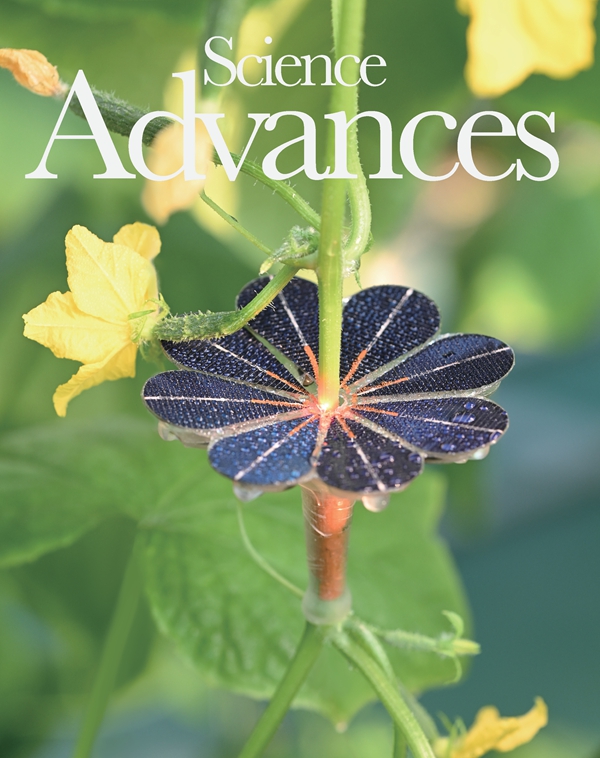 近日,星空彩票体彩版机电工程学院(新能源学院)教授刘湘江与浙江大学教授谢丽娟共同指导的硕士生王爽,在《科学进展》(Science Advances)期刊发表题为《仿生太阳花:自供能植物可穿戴传感器》的研究论文。该论文针对当前可穿戴式传感器领域的共性瓶颈——供能和持续监测问题,提出一种仿生植物可穿戴传感器。