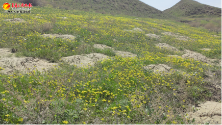 在沙漠这一特殊生境中,分布的是叉梗顶冰花,茎直立不分支,基生叶扁平,花被片黄色,顶端渐尖。