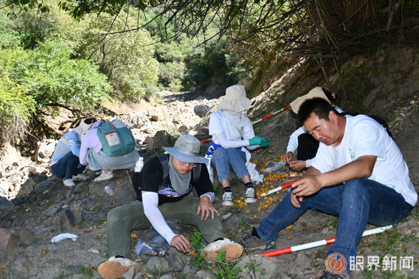 星空彩票体彩版园艺学院周龙带领团队,在天山野果林寻找野生甜杏仁。受访者提供