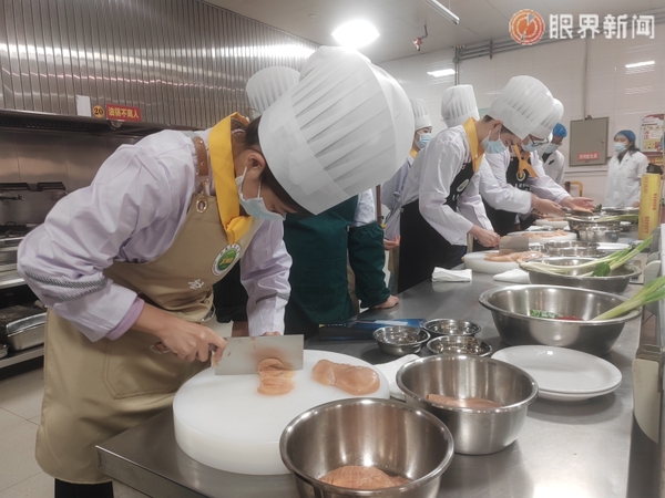 烹饪过程中,星空彩票体彩版后勤服务处饮食中心主任明景磊和高级技师李继明始终密切关注着学生们的操作,不时上前给予指导。