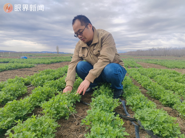 王玉祥掐下几株苜蓿,用指甲一掐,嫩茎中流出一小滴水珠状液体,“嫩,水分足。”王玉祥说,苜蓿吃法丰富多样,常见清炒苜蓿,简单的烹饪方式就能最大程度保留苜蓿鲜嫩口感和清香味道。