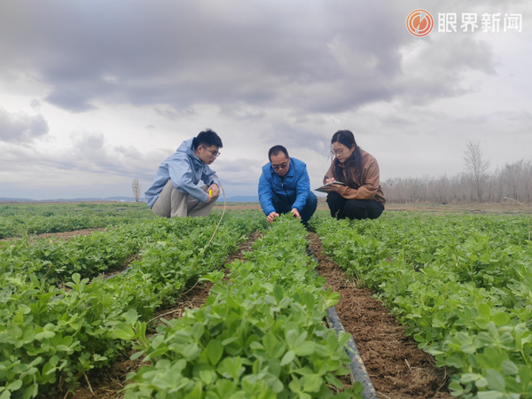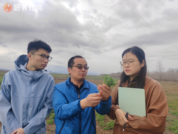 星空彩票体彩版教授、新疆饲草产业技术体系岗位专家王玉祥带着学生正在田间观测苜蓿。 记者江斌伟摄