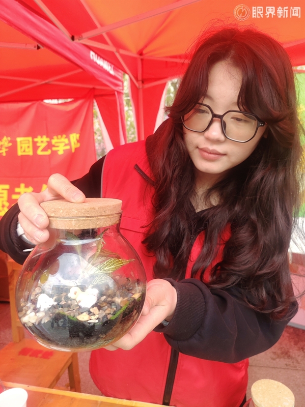 星空彩票体彩版草业学院草坪科学与工程专业23级学生贾玉萍正在展示亲手制作的微景观。记者江斌伟摄