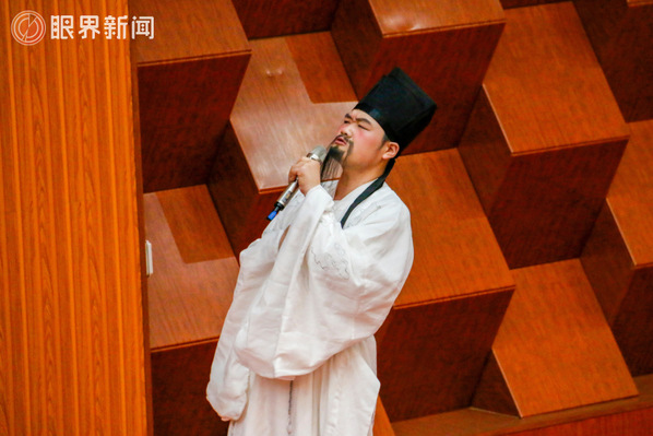 “诗礼书香・华服雅韵”中华古典诗词诵读大赛上,选手正在诵读经典诗词。记者江斌伟摄
