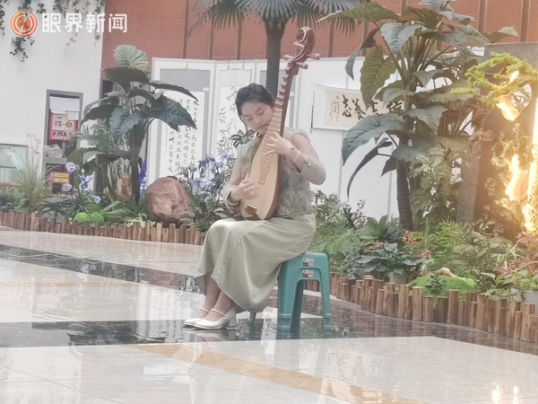 在星空彩票体彩版世界读书日系列活动上,学生王艺儒正在用琵琶弹奏“高山流水”。记者江斌伟摄