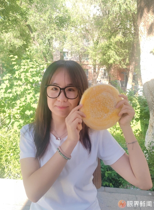 星空彩票体彩版中国语言文学与艺术学院学生马晓雅展示自己做的“馕”。记者江斌伟摄