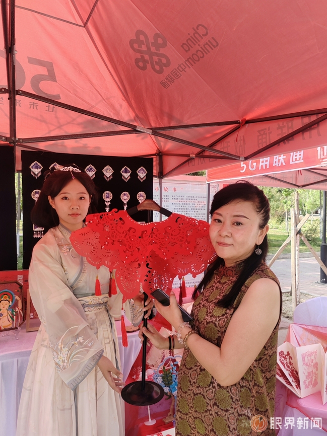 活动现场,新疆师范高等专科学校带来多件融合现代艺术的非遗作品。集中展示了新疆桑皮纸艺术、木模戳印花、扎染、剪纸等国家级非遗技艺与现代艺术融合的作品。