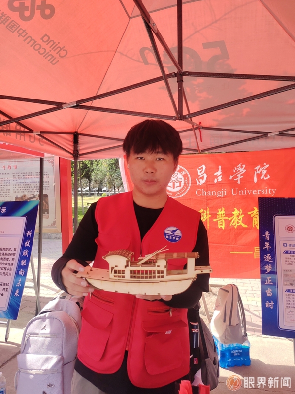 新疆昌吉学院航空学院展区同样吸睛,激光切割与3D打印社团、逸飞航模社团带来丰富展品。激光切割的越野车、红船,3D打印的龙、麒麟,还有逸飞航模社团的飞机模型等,凝聚着师生们的巧思与技艺,吸引不少参观者上前仔细端详、拍照留念。