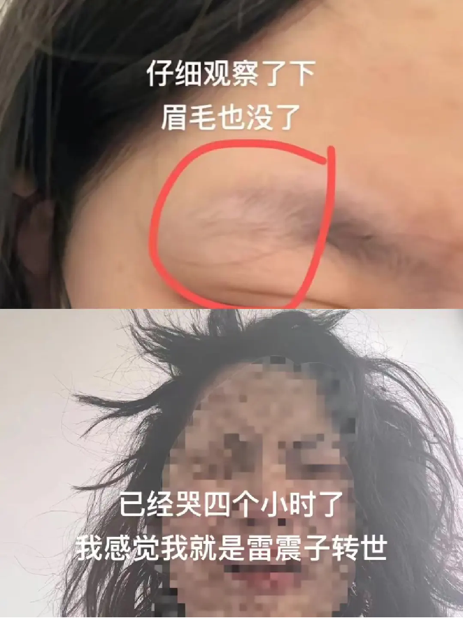 事后半边身子使不上力,手上血管清晰可见,大量头发碳化,眉毛也未能幸免于难。