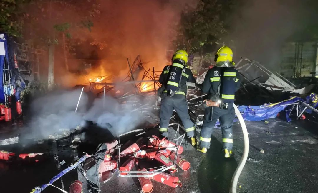 10月18日23时14分西安财经大学长安校区门口一门面房起火接警后消防救援人员立即出动