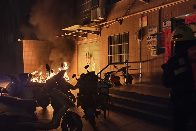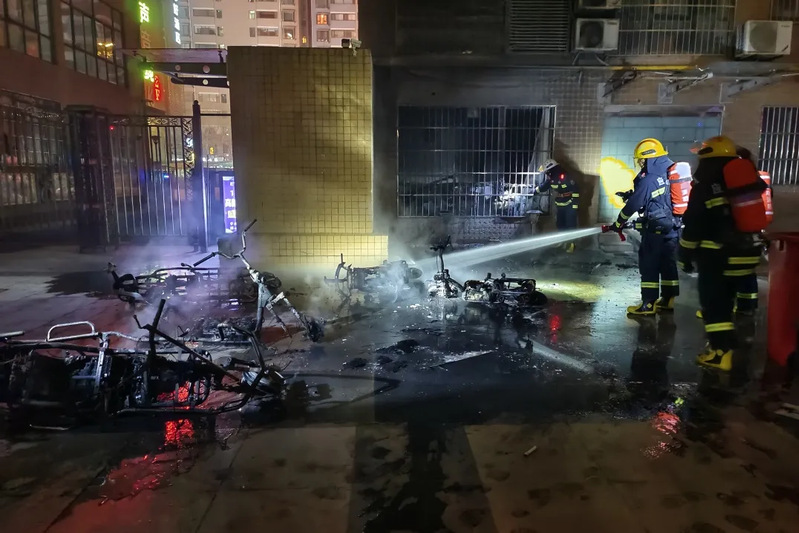 今年2月12日22时04分,陕西宝鸡高新区一小区内,一辆电动自行车电池自燃引发火灾。接警后,消防员立即赶赴现场处置。