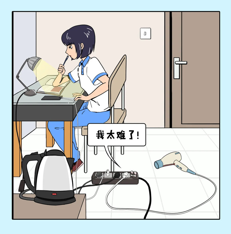 遵守宿舍管理规定,确保用电安全。禁止使用大功率电器和违规电器,如电锅、电炉、电热棒等,不私拉电线,不超负荷使用电器。