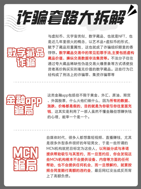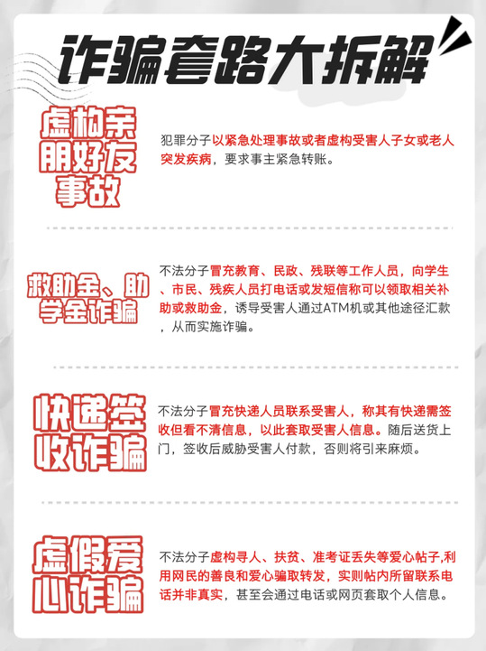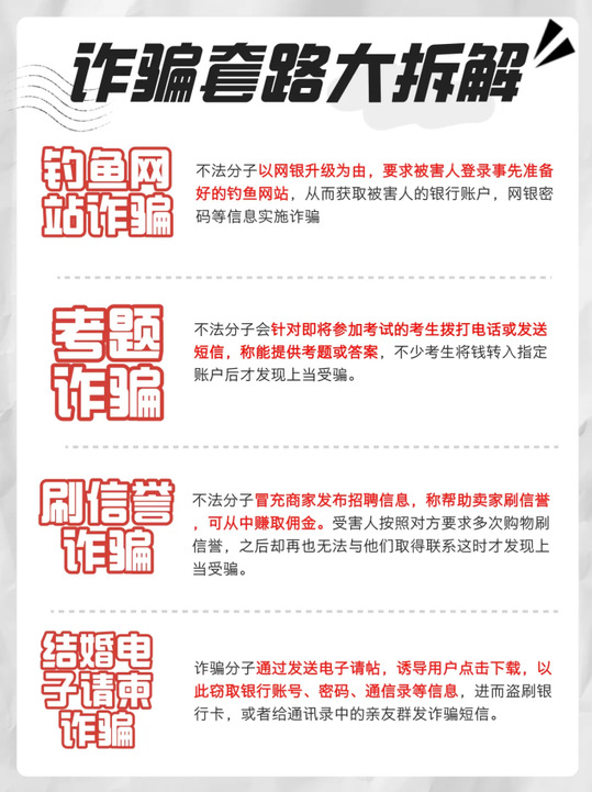 如今骗术花样百出,稍不留意将损失惨重,不学习防骗知识你能躲掉吗?只要意识不到位,身边处处是缅北!被骗了才开始着急,钱早就飞走咯。下面是12条防骗警句,一定牢记在心中。