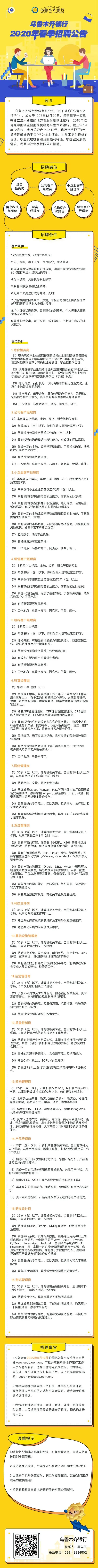 校园网络招聘||乌鲁木齐银行2020年春季招聘公告