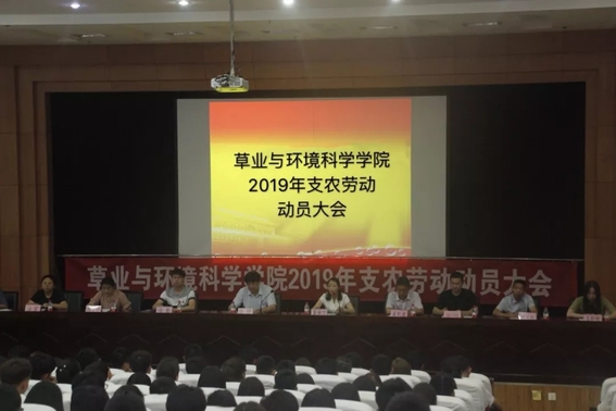 6月26日下午6:00,草业与环境科学学院在大礼堂学术报告厅召开了2019年支农劳动动员大会。草业与环境科学学院院长张博,党委副书记葛倚汀,地理信息科学系主任武红旗,辅导员冯魁、王舒钥、戈艳美、阿垦里白·木赛、买热吾力·买合木提及2018级班主任和2018级全体学生共400余人参加了本次大会。