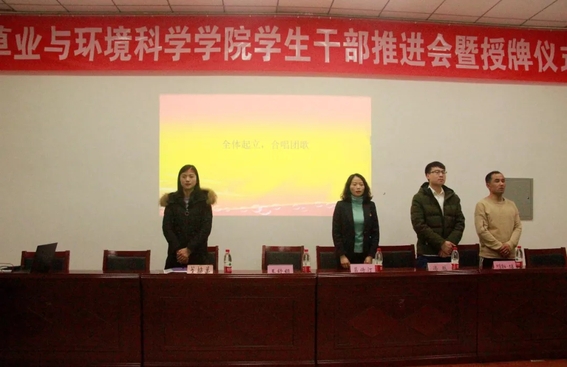 3月17日,草业与环境科学学院第二十一届团委、学生会学生干部在农科楼一楼学术报告厅举行学生干部推进会暨授牌仪式。
