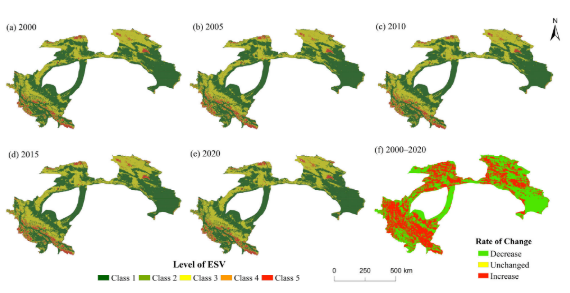 Zhang, S.; Wang, Y.; Wang, Y.; Li, Z.; Hou, Y. Spatiotemporal Evolution and Influencing Mechanisms of Ecosystem Service Value in the Tarim River Basin, Northwest China. Remote Sens. 2023, 15, 591.