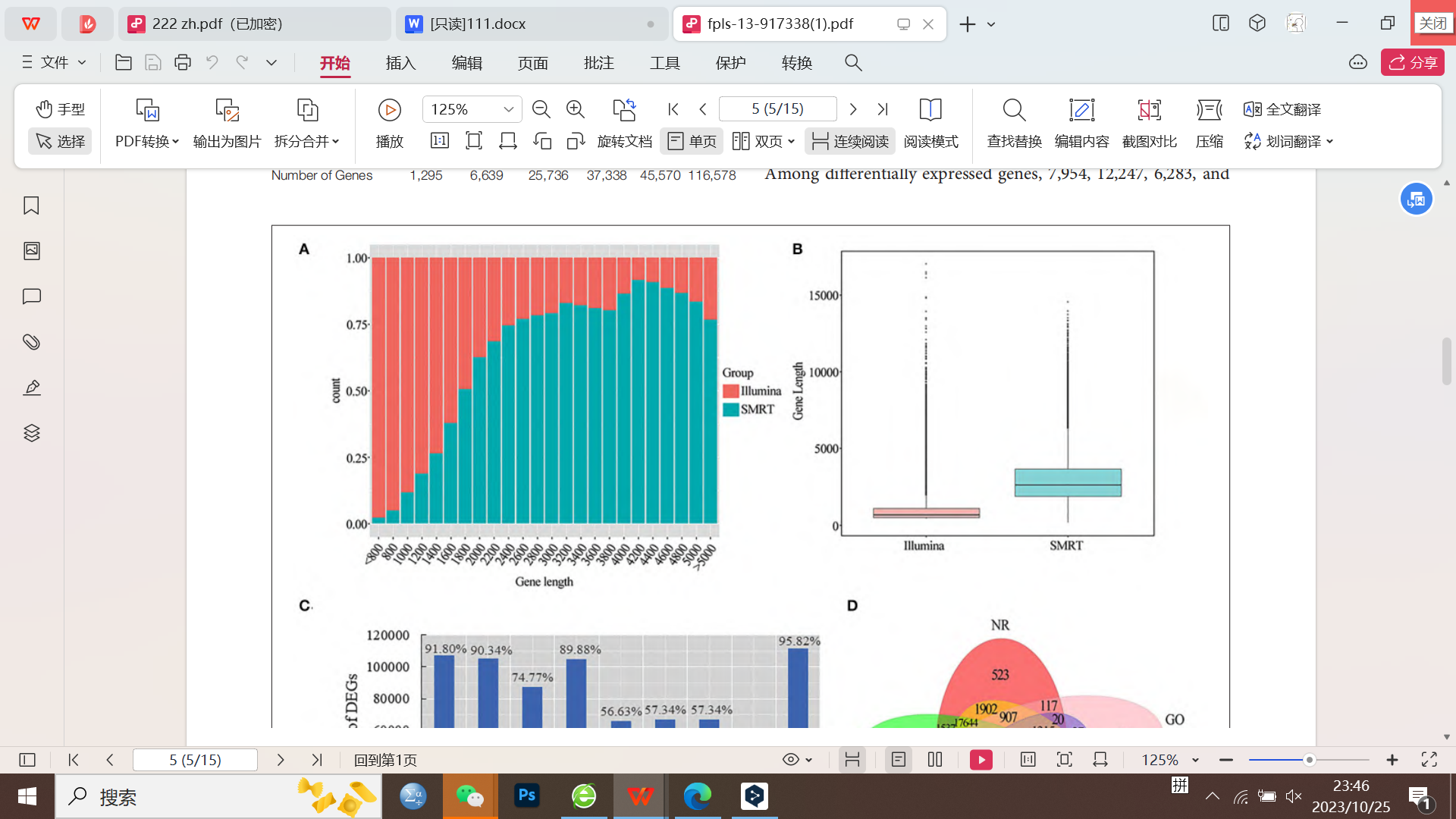 图1:(A)lllumina和SMRT测定的基因数量分布图;(B)lllumina和SMRT测定的基因长度分布图