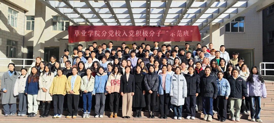 班主任马艺修,草业学院辅导员李琪,以及草业学院分党校第79期全体入党积极分子。