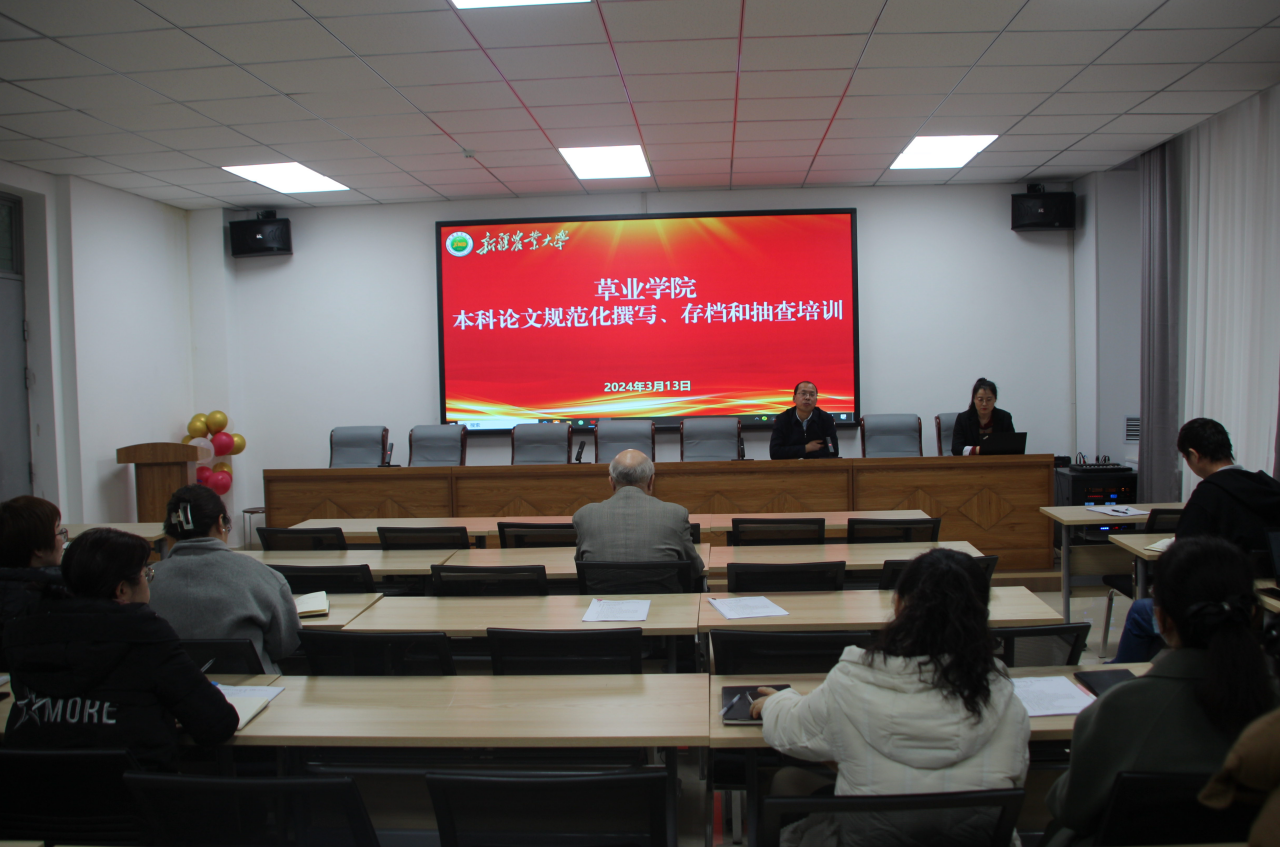 为规范本科毕业论文撰写要求,切实提升本科毕业论文质量,稳步推进2024届本科毕业论文指导工作,草业学院于2024年3月13日下午,学院组织召开题为“本科毕业论文规范撰写、存档和抽查培训”。教学副院长孙宗玖、全体人员及承担本科毕业论文指导工作的专业教师参加讲座。