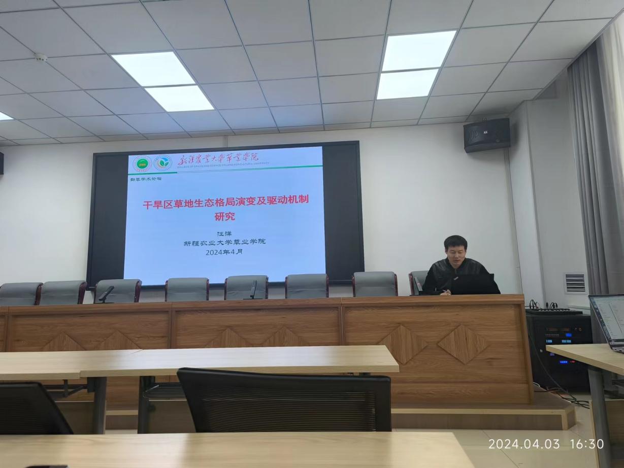 汪洋副教授在会议上向大家展示了“干旱区草地生态格局演变及驱动机制研究”领域的深邃见解。汇报简要介绍了该研究领域的重要意义,特别是在干旱区草地生态格局演变及其驱动机制方面。见微知著地揭示了土地利用格局的演变及其驱动因素,还深入剖析了“三生空间”(生产、生活、生态空间)演变过程中的生态环境效应及其驱动因素。这些内容使得师生们对于影响气候变化和生态环境的驱动因素有了更深入地了解。