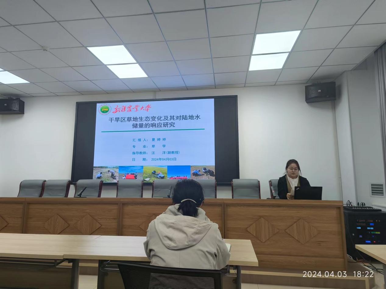 夏婷婷博士就“干旱区草地生态变化及其对陆地水储量的响应研究”进行了汇报,向大家介绍了塔里木河流域植被演变特征规律以及未来发展趋势,同时也对未来发展趋势进行了深入的预测和分析,通过数据分析和模型研究,揭示了气候变化背景下植被与陆地水储量之间的相互作用和响应机制。