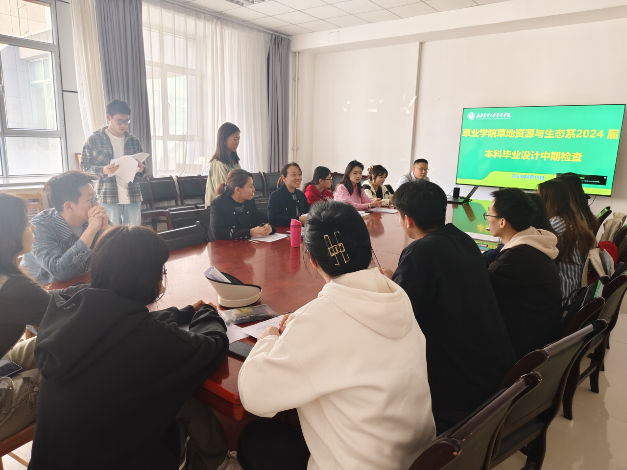 为了加强我院本科毕业论文规范化管理,过程性管理,保证毕业论文质量,草业学院于2024年4月19日开展2024届本科毕业论文中期检查工作。参加本次中期检查的学生共计88名,分成3个组,分别由草地资源与生态系的靳瑰丽、赛米拉克孜·台外库力和杨素文老师,草坪科学与工程系的陈爱萍和李陈建老师,草产业系的谷丽丽和杨静老师负责。